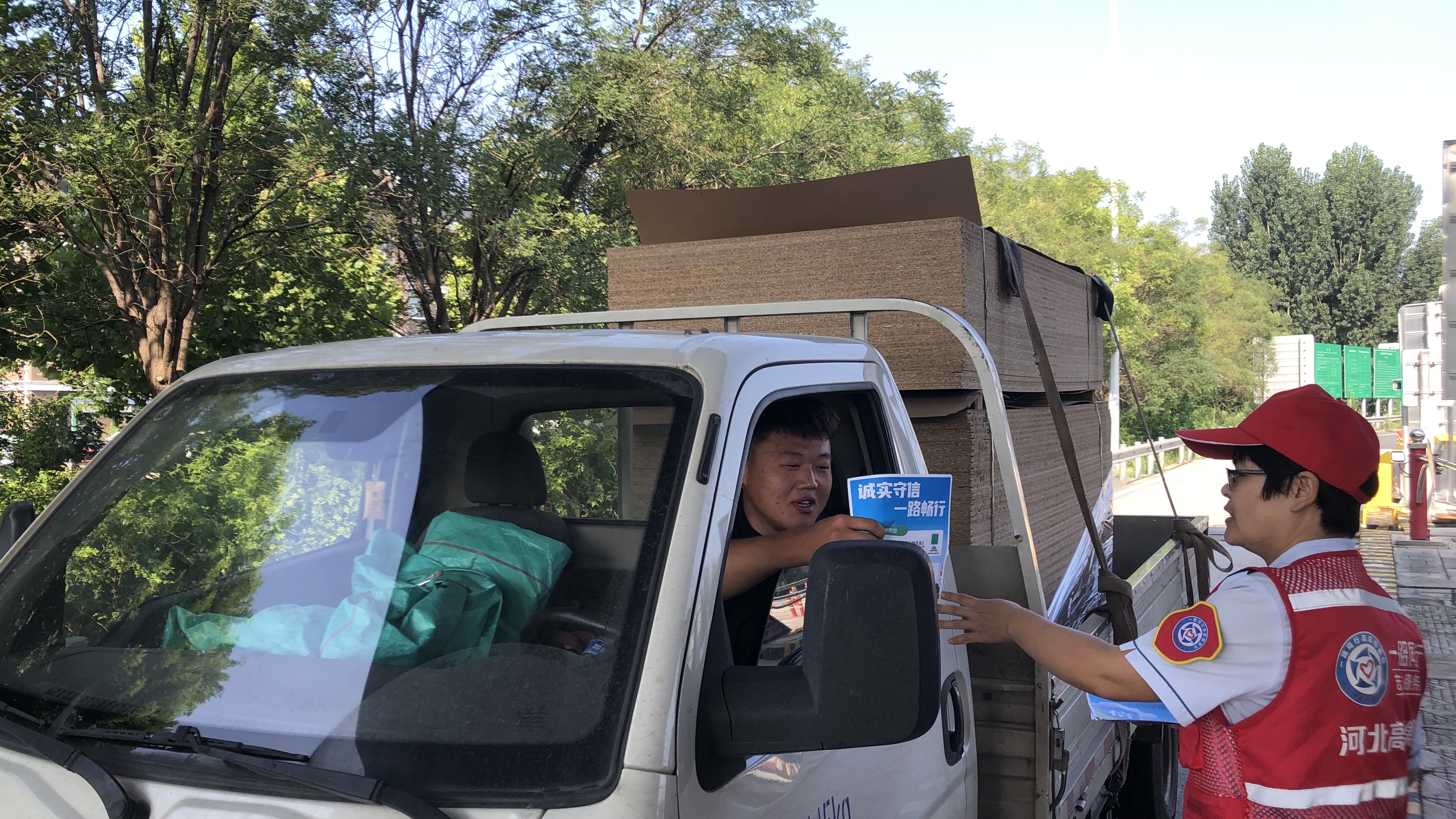 为让诚信理念深入司乘心中,东新庄收费站在收费广场向过往司乘发放宣传资料,详细讲解超限超载及不合格绿通的危害及相关失信案例等高频问题。收费人员通过面对面沟通交流,帮助司乘清晰认识到违法违规行为对个人信用、道路安全及行业秩序的严重危害,引导大家自觉践行“诚实守信,一路畅行”理念。
