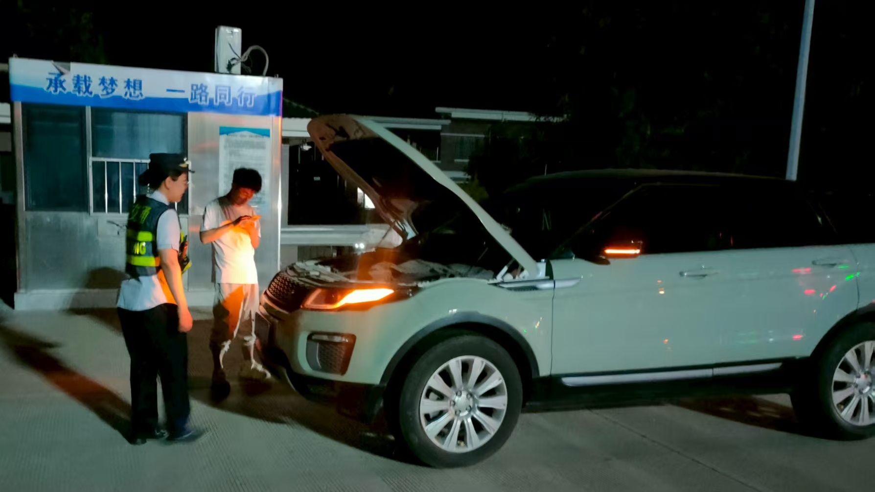 9月18日22时许,一辆小客车在平安城收费站完成缴费后,以缓慢车速向收费站外广场行驶,最终停在便民服务亭旁。当班班长敏锐捕捉到这一异常,立刻快步上前了解具体情况。