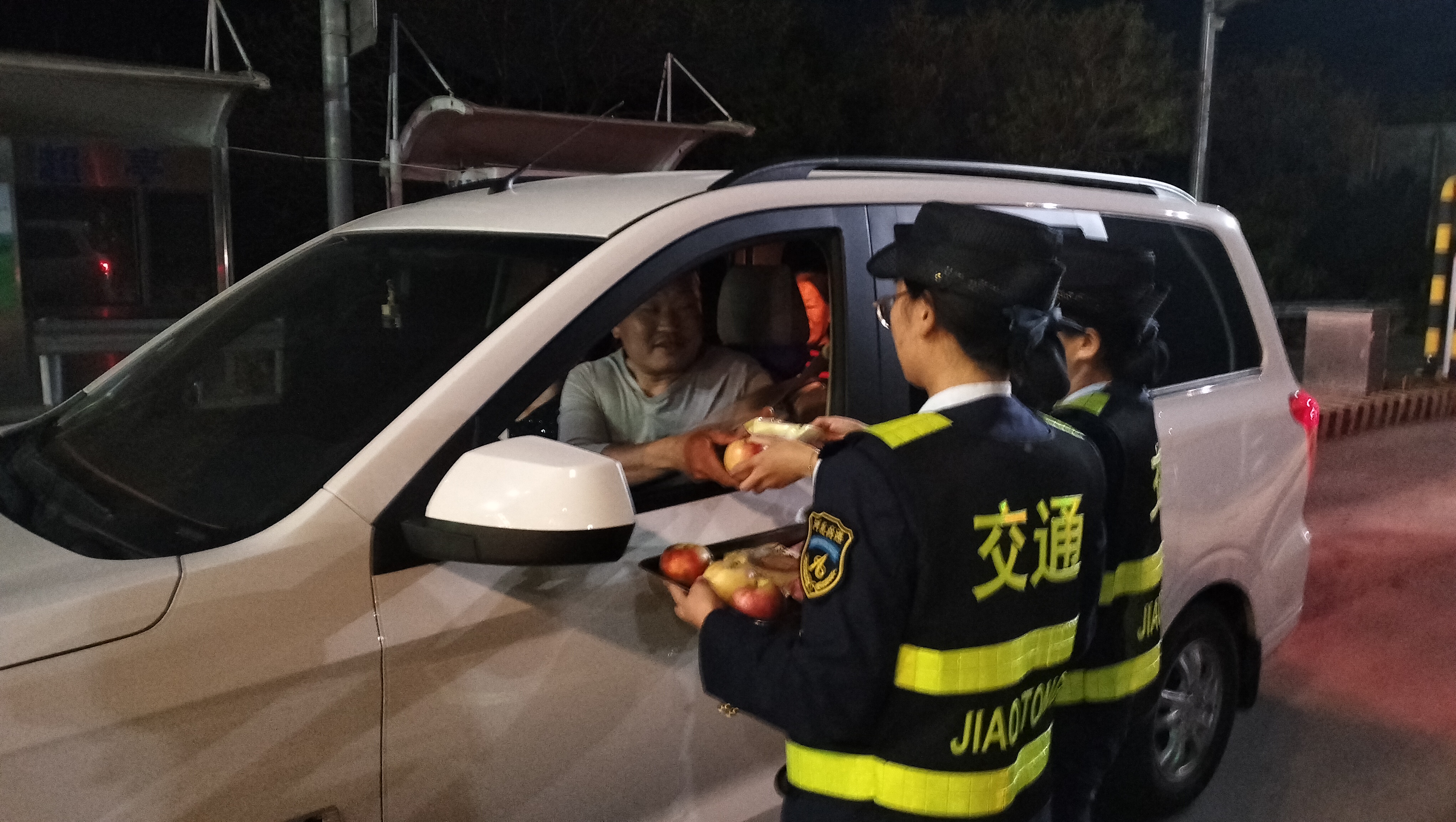 中秋夜的清东陵收费站暖意融融,工作人员手递月饼与苹果,将香甜与平安的祝福融入司乘归途,让奔波的路程满是团圆的期盼。