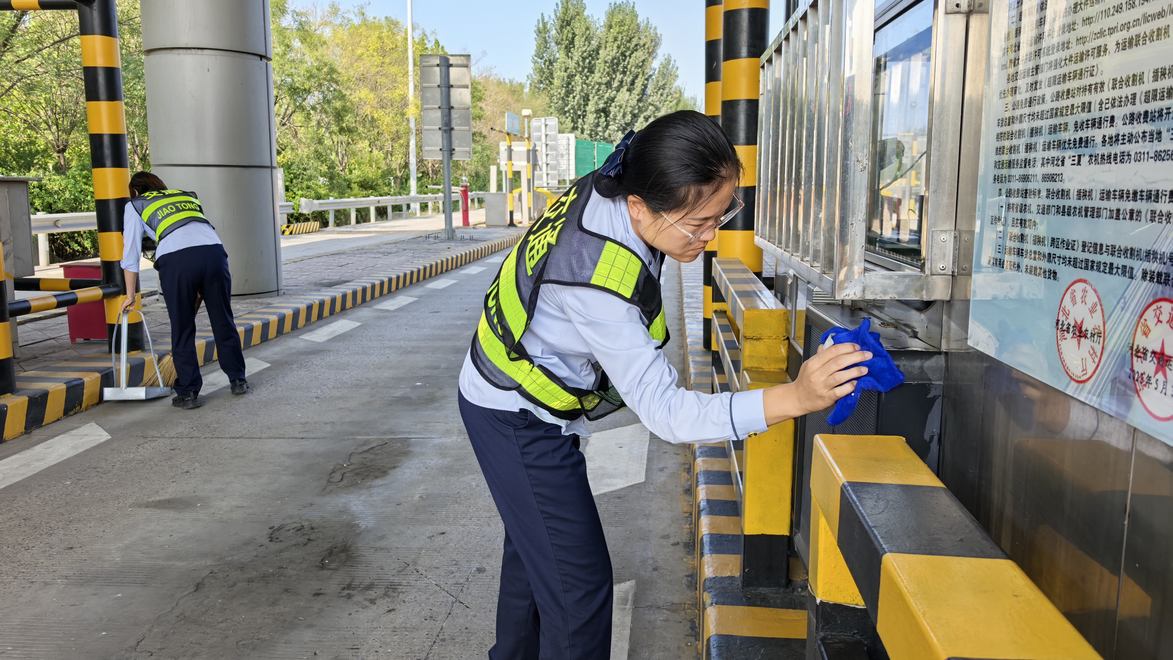 环境整治焕新颜,氛围营造庆佳节。在保障通行的同时,每日对站区内外、收费车道进行全面清扫,确保环境整洁有序;同步在收费广场悬挂红旗、布置国庆主题装饰,浓郁的节日氛围既彰显了喜庆祥和的节日气息,也为过往司乘营造了优美的通行环境,让出行体验更添愉悦感。