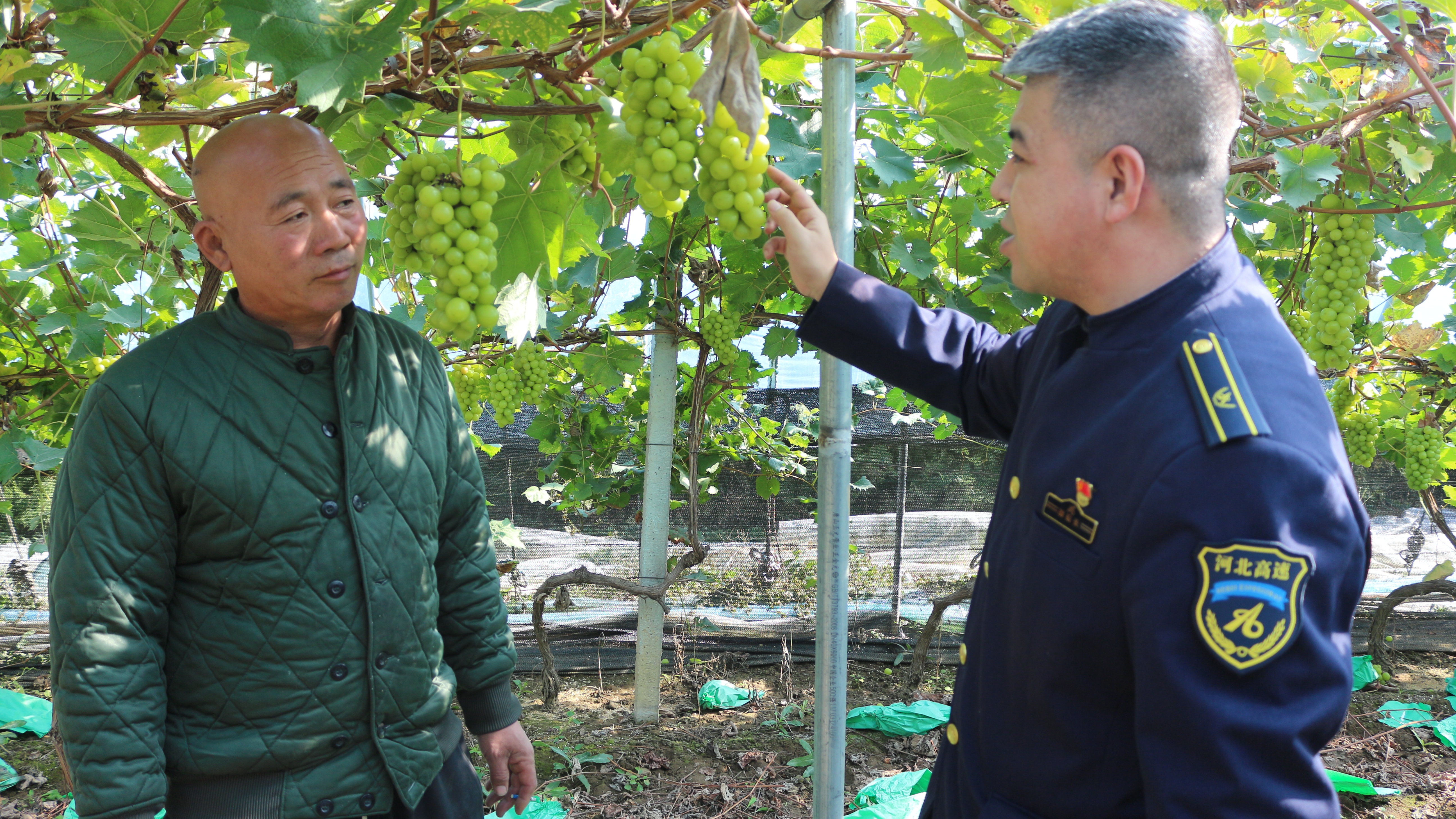专属通道“加速跑”。为保障老客户“通行+采摘”全程顺畅,平安城收费站在原有ETC通道旁专门增设“同行服务”专属通道,并配备疏导人员现场值守。疏导人员不仅负责引导车流、维持通道秩序,还会主动为司乘解答金生采摘农场的路线指引、停车位置、当季采摘品类等疑问,让老客户快速通行,轻松开启采摘之旅。