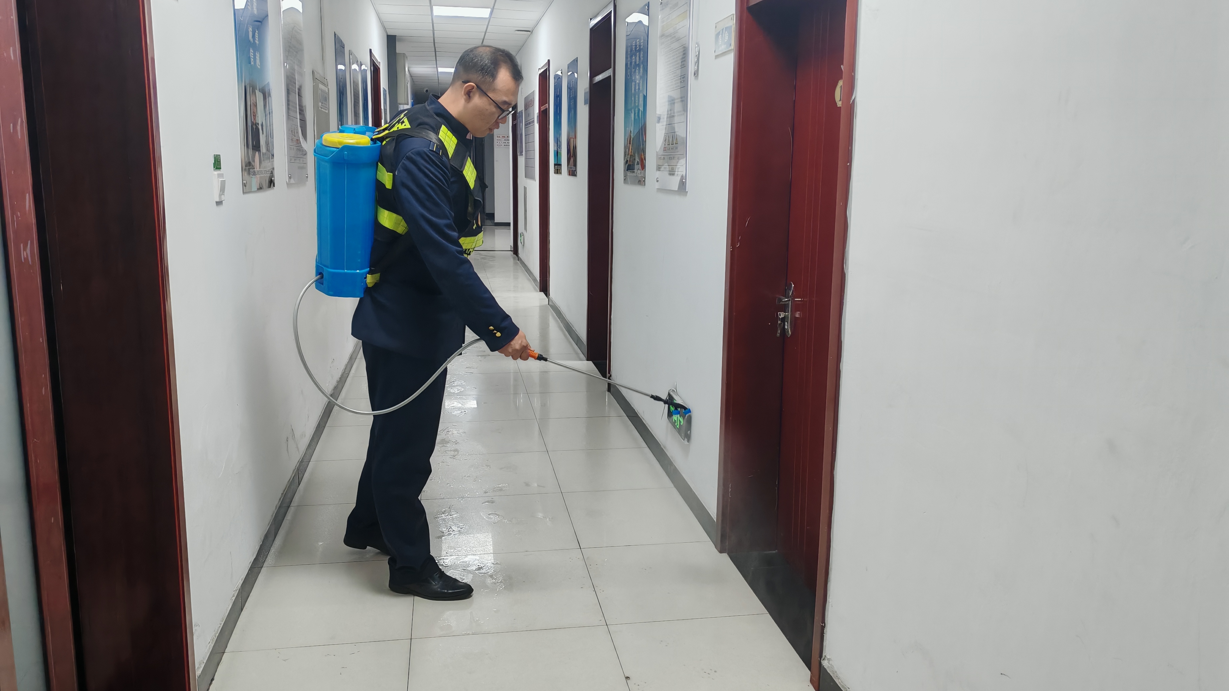 工作人员严格按照消毒规范,对宿办楼的办公室、走廊、卫生间、宿舍等区域进行细致喷洒和擦拭,确保不留死角、不漏盲区;针对食堂这一人员集中场所,重点对操作间、餐桌、餐具存放区、就餐区等进行彻底消刹,同时加强通风换气,从源头阻断病毒传播途径。