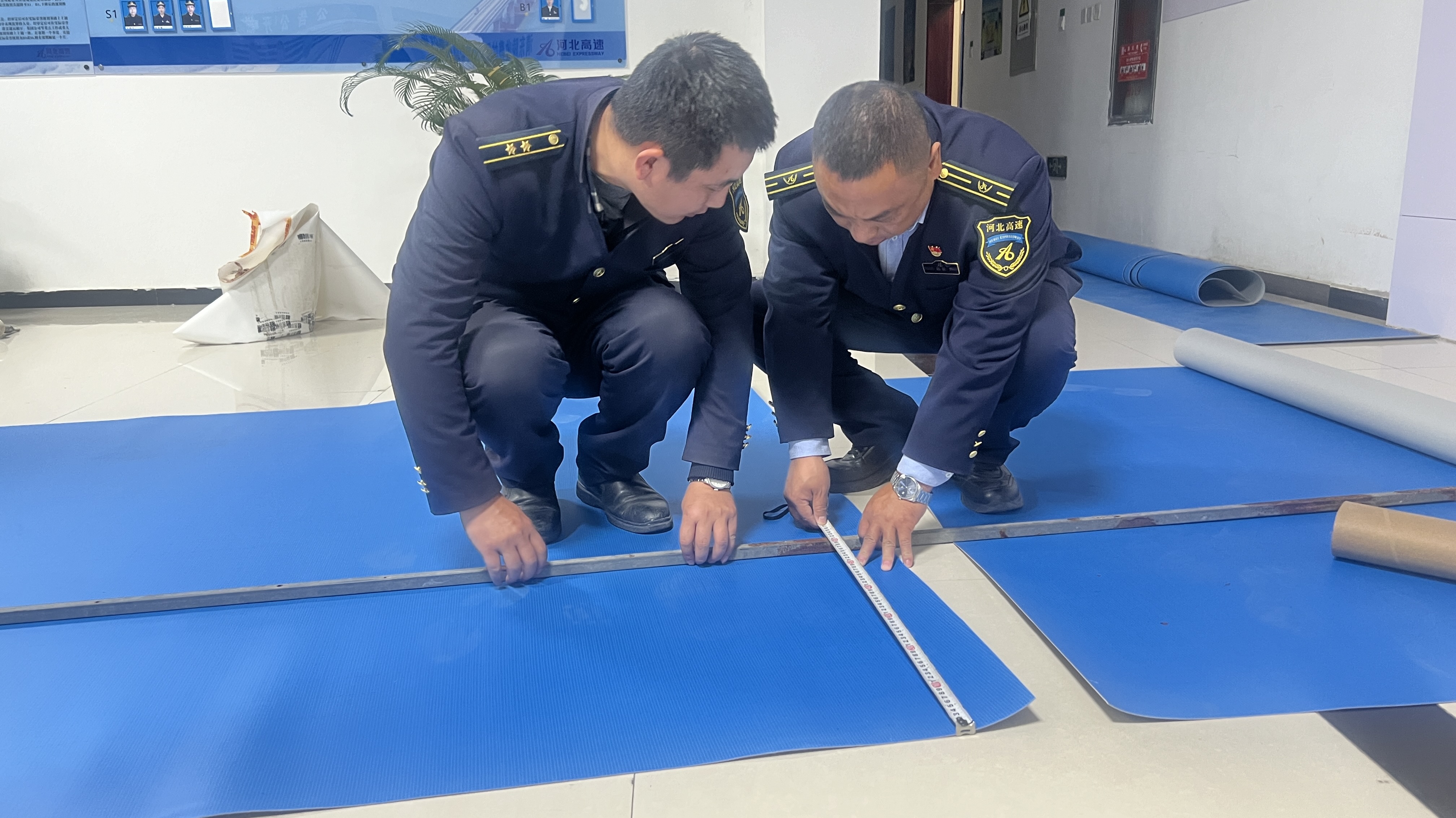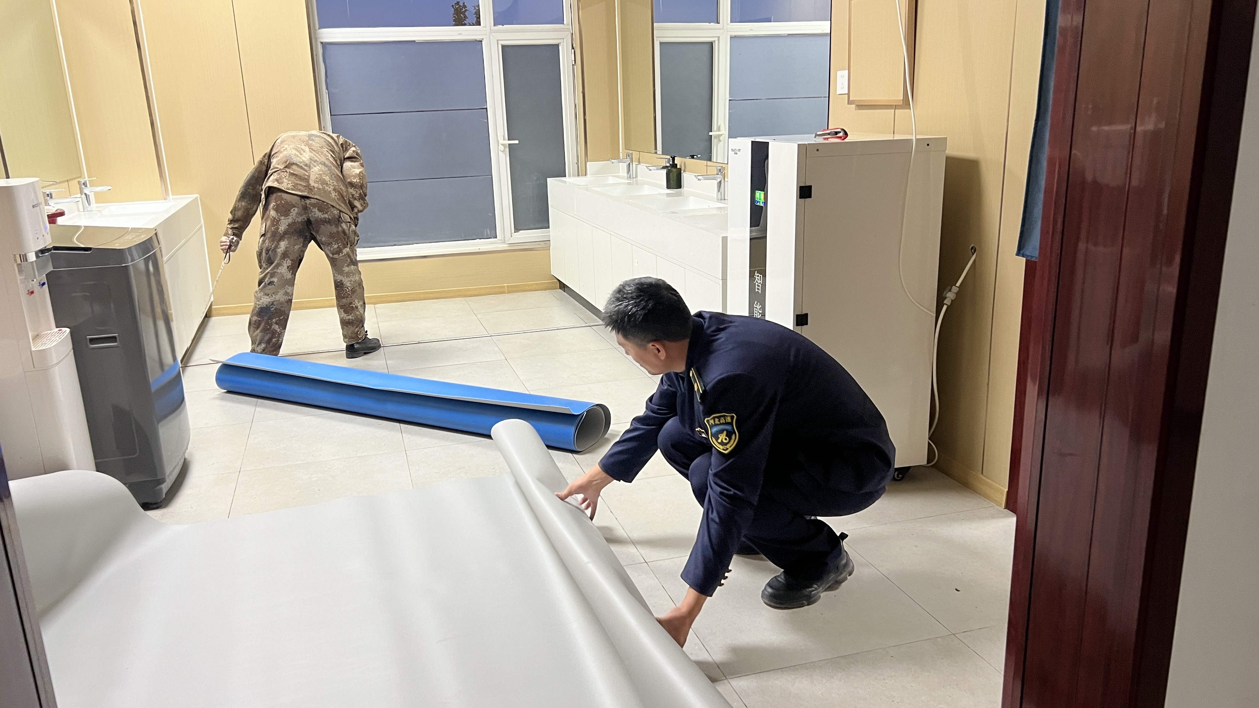 活动中,站领导带头行动,职工们积极响应,利用工余时间纷纷化身“改造能手”。大家分工协作,默契配合,从精准测量洗漱间尺寸,到细心裁剪、规范铺装,每一环节都力求精细。随着一块块崭新地垫平整铺设,原本朴素的洗漱间焕然一新。清新明亮的色调打破了空间的单调感,防滑耐磨的材质提升了日常使用的安全性,整个空间洋溢着如家一般的温暖与舒适。职工们在共建美好站区的过程中,也收获了满满的成就感与归属感。