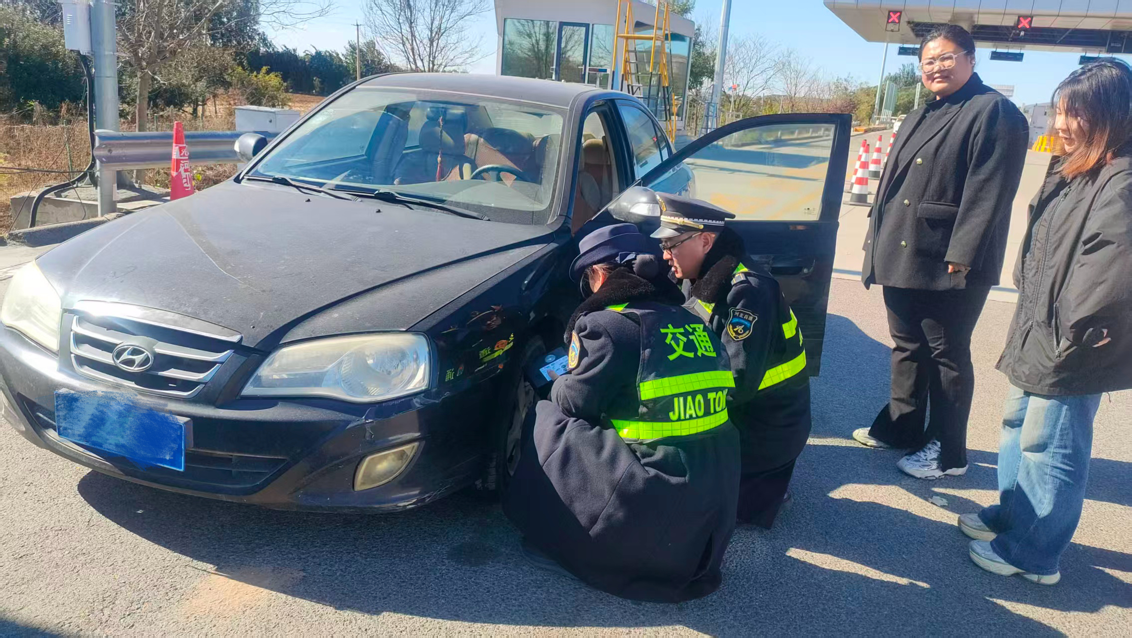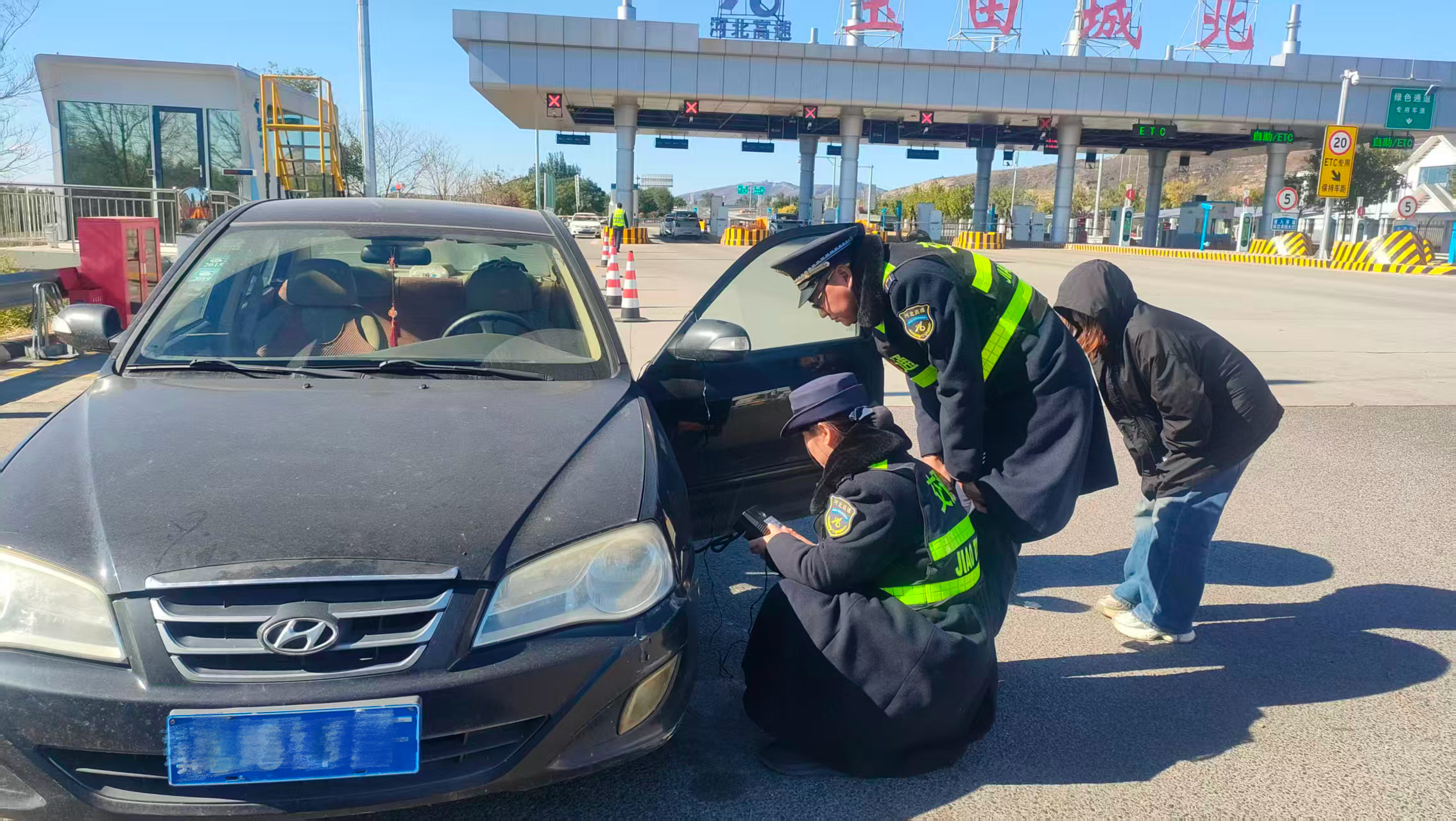 11月19日,一辆黑色小客车停靠在玉田城北收费站出口广场,车主反复下车查看轮胎,这一异常情况立刻引起了收费站工作人员的注意。