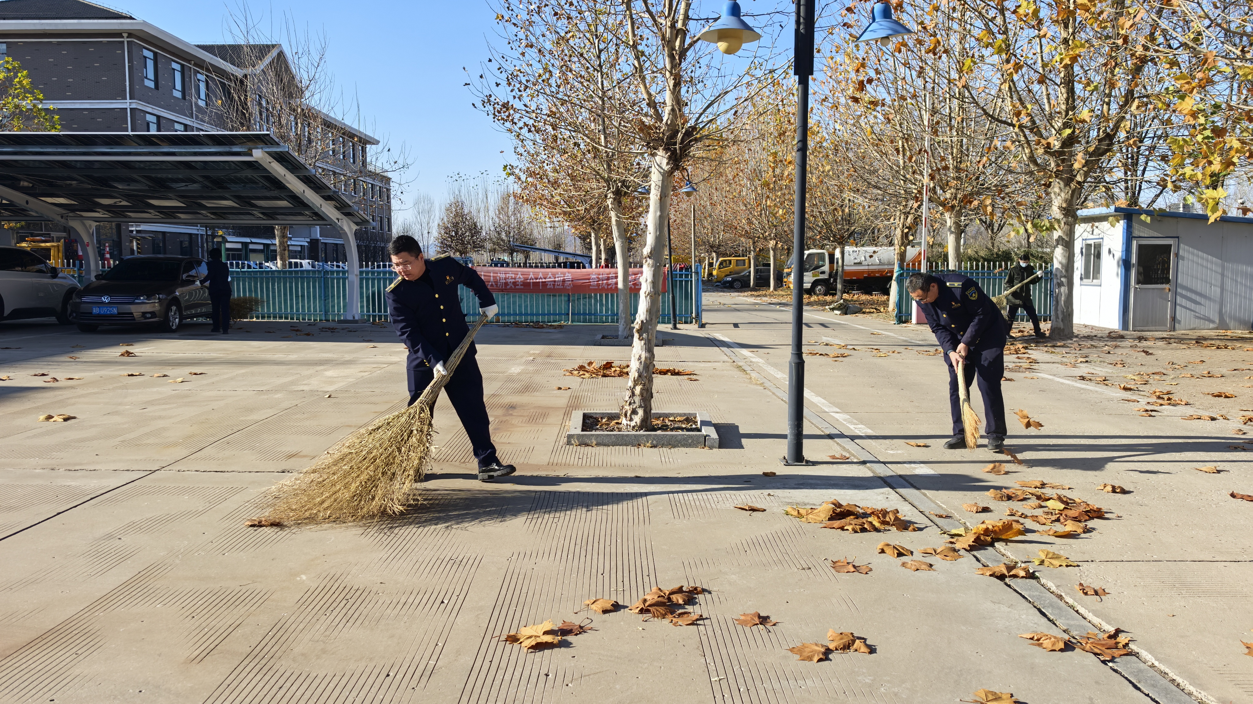清扫现场,职工们热情投入、分工协作,手持大扫帚、簸箕等工具,对站区前后广场、院内通道、绿化带等重点区域展开“拉网式”清理。从落叶归拢、角落清捡,到杂物收集、集中清运,整个过程中,大家相互配合、默契十足,时不时还会互相鼓劲,现场一派热火朝天又井然有序的景象。经过数小时的共同奋战,站区内的落叶被清理一空,整个站区环境焕然一新。