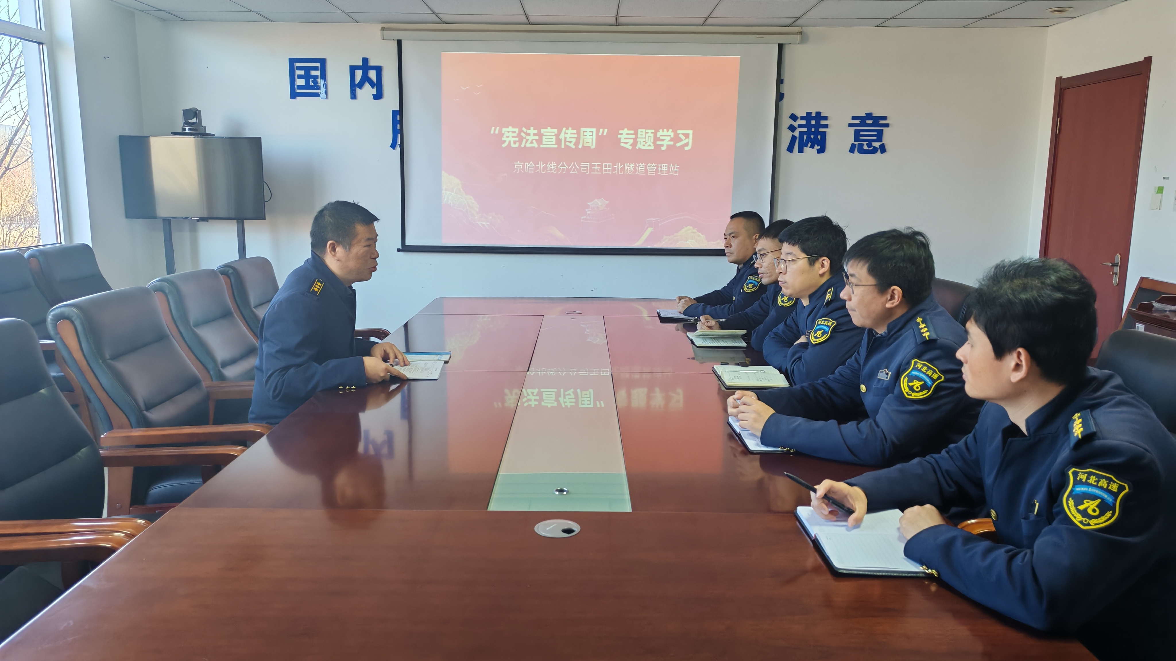 2025年12月1日至7日,是我国第八个“宪法宣传周”。为大力弘扬宪法精神、维护宪法权威,扎实推进宪法宣传教育走深走实,近日,玉田北隧道管理站紧扣“学习宣传贯彻习近平法治思想,推动宪法深入人心”主题,开展了一系列内容丰富、形式多样的“宪法宣传周”学习宣传活动,让法治理念在交通一线落地生根。