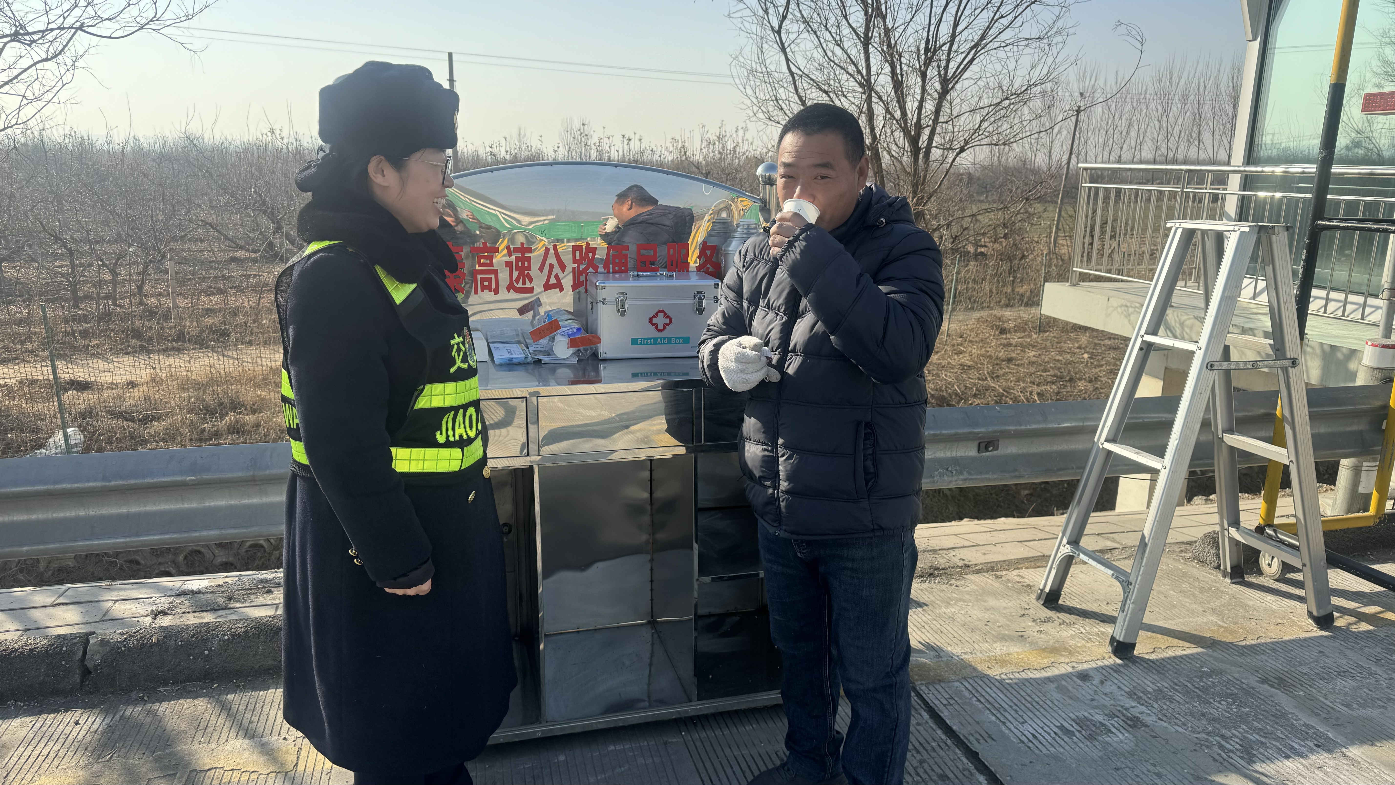 寒风中的站口,总有不期而遇的温暖。12月17日清晨,玉田城北收费站外广场寒气袭人,一名乘客裹紧外套来回踱步,呵着白气搓手取暖。正在值岗的工作人员见状,立即从便民服务台取来热水,快步递上:“师傅,天太冷了,先喝杯热水暖暖身子!”