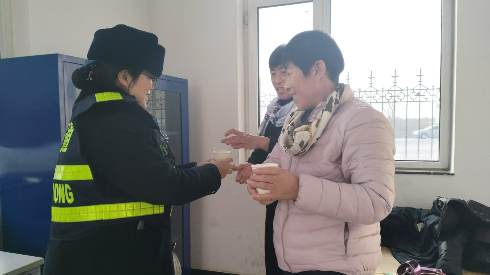 见她们脸颊冻得通红,工作人员立即热情邀请她们到温暖的休息室休息,还贴心递上两杯热气腾腾的白开水。温水暖手,更暖心,两位女士脸上瞬间绽开感激的笑容。