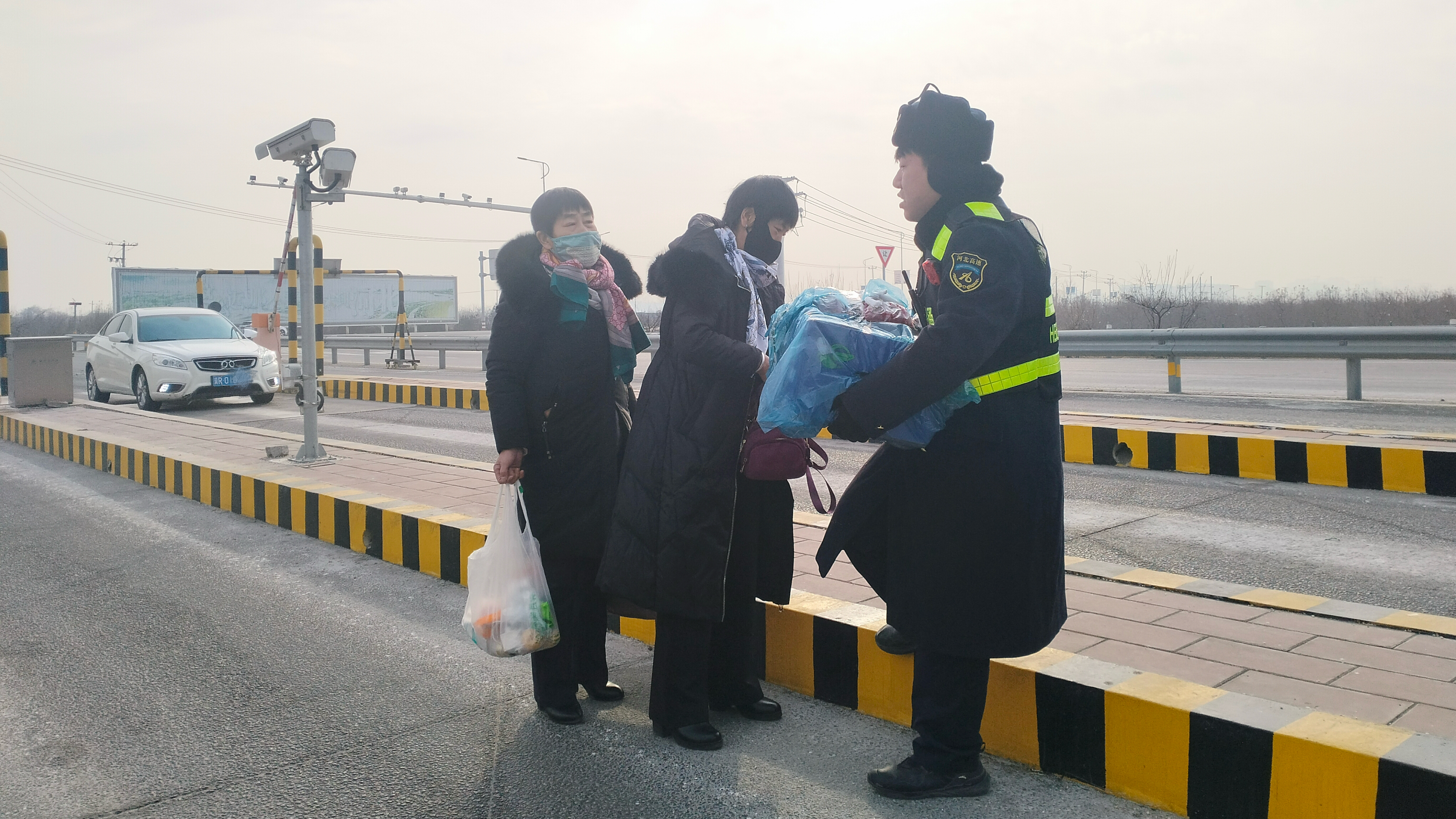 12月24日,北风凛冽,寒意逼人,玉田城北收费站工作人员始终坚守岗位,密切注视来往车辆与行人。执勤期间,他们发现收费站入口处有两位女士提着沉重行李,在风中不停踱步、频频张望,神情十分焦急。上前询问得知,二人正等候前往赤峰方向的大巴车,距离车辆抵达还有一段时间。