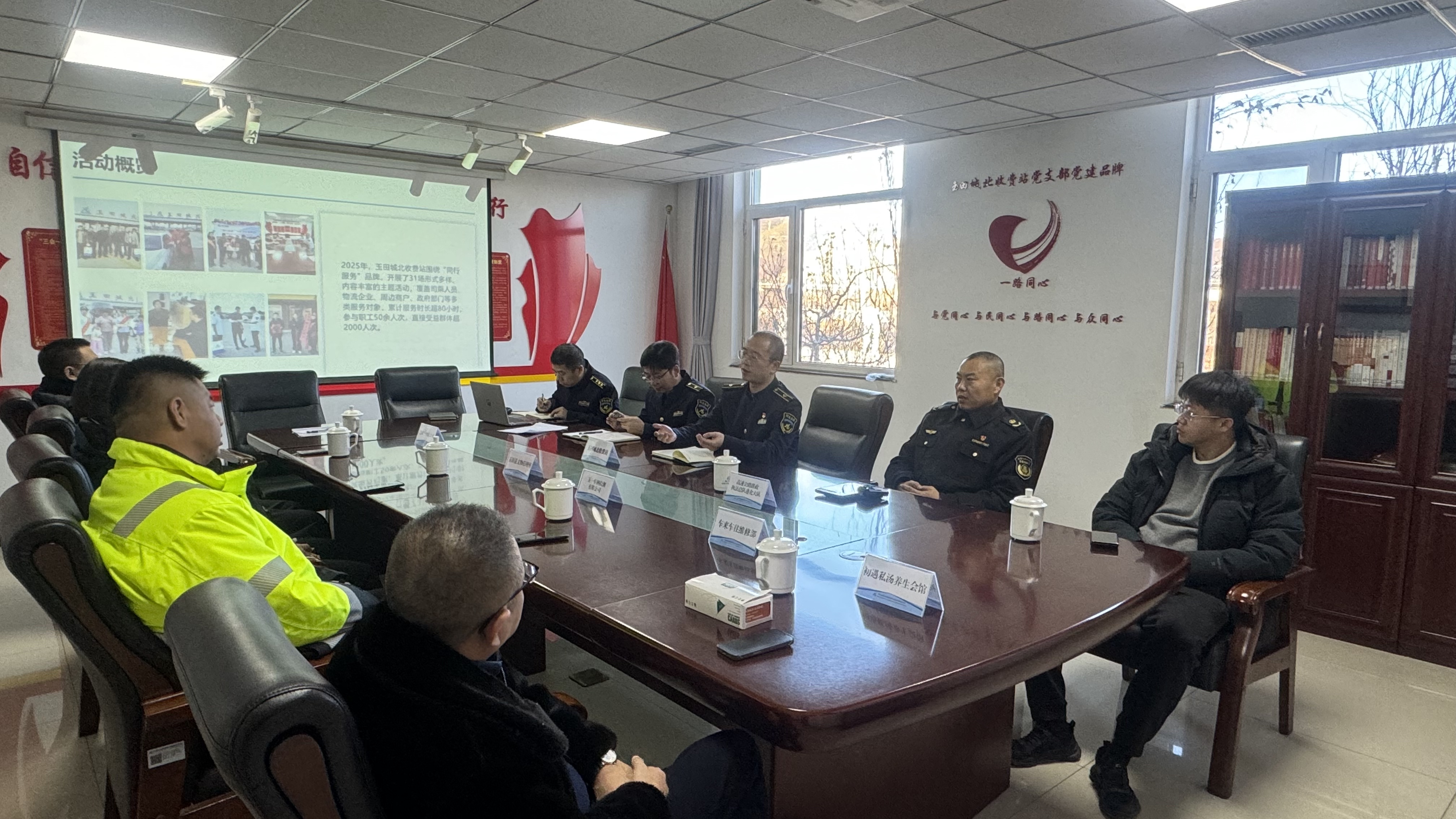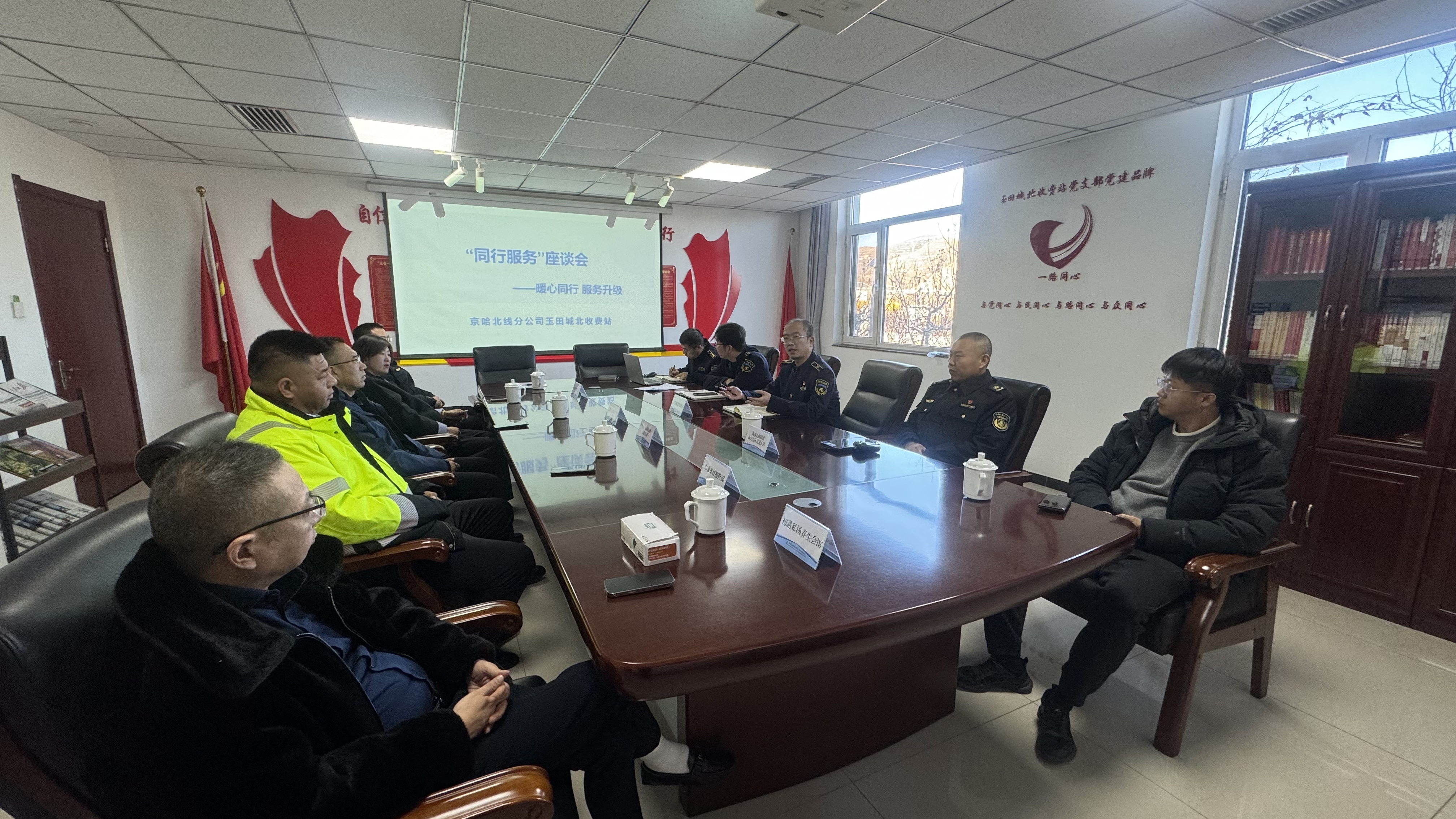 会上,玉田城北收费站负责人首先向参会代表介绍了“同行服务”品牌建设背景、现有服务体系及发展规划,随后各方立足自身职能与资源优势,围绕高速公路服务生态圈建设坦诚对话:就如何将文化展示、物流保障、应急救援等功能与高速出行场景结合交换思路,探讨“高速+”多元化服务模式可行性;针对信息共享、设施互补、人员协作等议题深入交流,初步形成“需求互通、优势互补、难题共解”的合作共识;讨论建立常态化沟通机制,明确以群众满意度为核心的合作评价方向,为后续具体项目落地规划路径。
