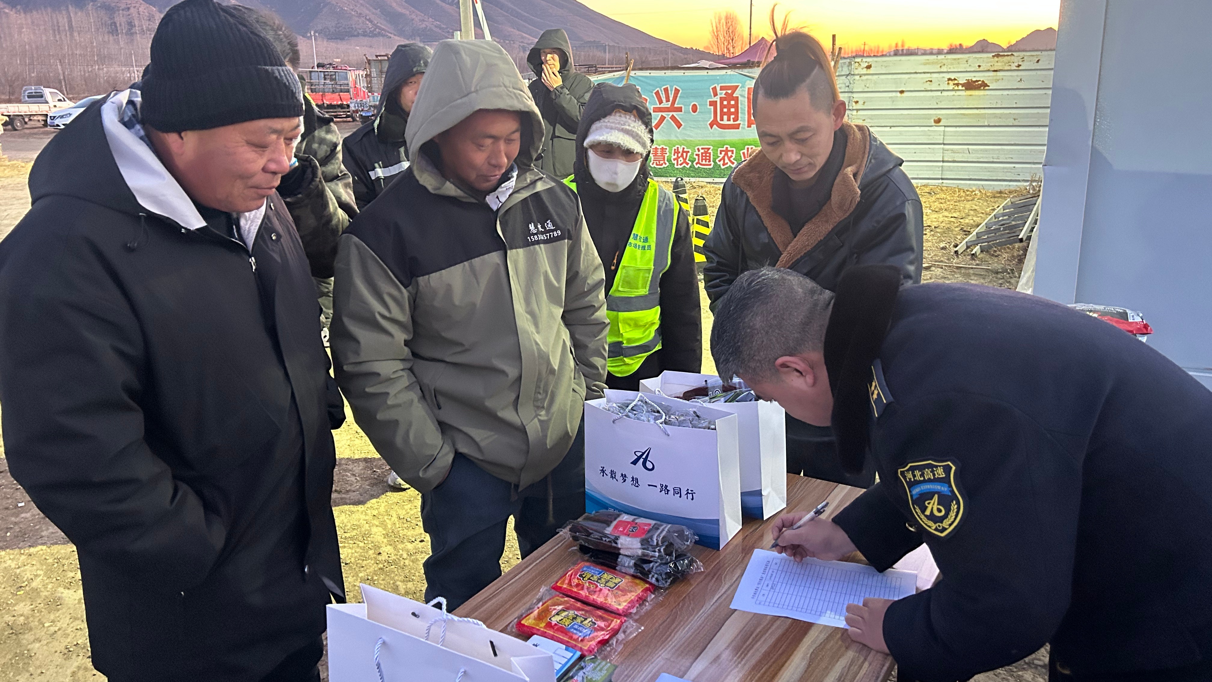 暖心礼包,精准匹配长途运输需求。“跑长途运输,最怕天冷风大,没想到收费站还专门准备了保暖手套、暖贴,还有加油优惠卡,太贴心了!”刚领取到暖心礼包的运输户王师傅连连点赞。为切实解决畜牧运输户长途出行的实际困难,平安城收费站为运输户带来专属暖心礼包,内含临时停车卡、保暖手套、暖贴、耳包等防寒实用好物,搭配“同行服务”合作商家加油优惠卡,既暖心又实用。礼包发放方式灵活便捷,运输户可通过直播线上预约申领,线下在平安城收费站服务窗口、慧牧通交易市场服务中心直接领取。