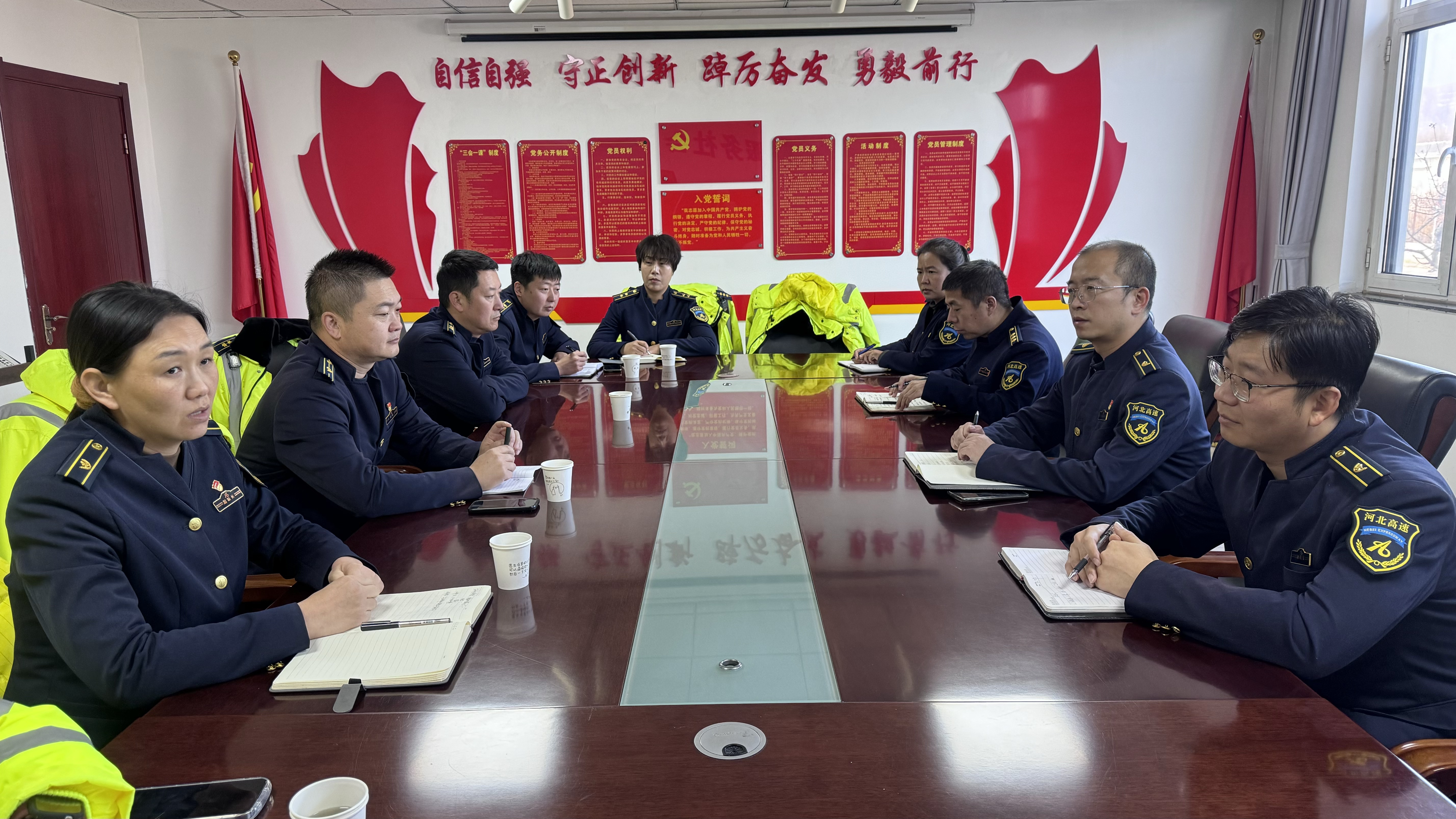 座谈会上,玉田城北收费站负责人分享了“科技+服务”的实践经验,介绍了在超融合技术应用、特情处置经验以及人员配置优化等方面的成果。秦皇岛东收费站的同仁们认真聆听,积极提问,现场交流氛围浓厚。
