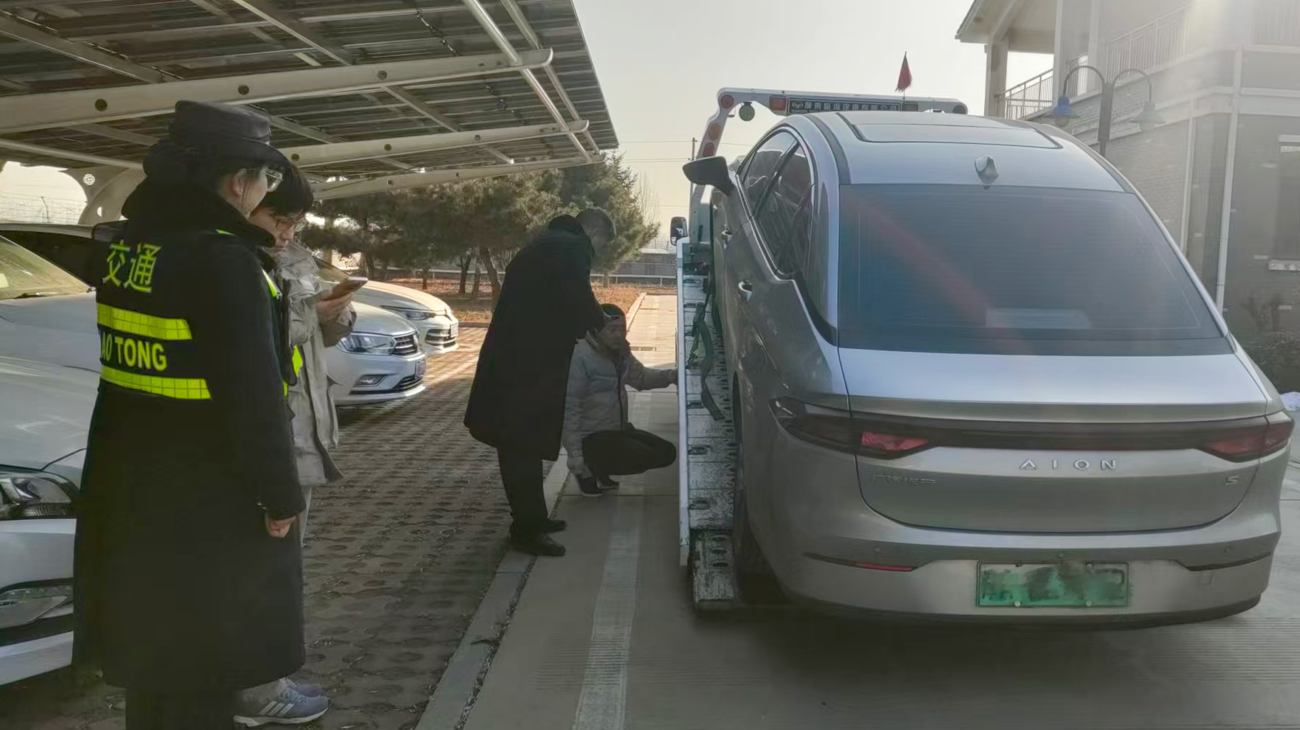 得知情况后,当班班长立即安抚司机情绪,并第一时间上报值班站长。值班站长抵达现场后,首先尝试为车辆提供应急充电支持,但因司机未携带家用充电转接头,该方案未能实施。为尽快解决司乘困境,值班站长迅速联动当地专业拖车资源,精准对接最近充电站位置,高效完成车辆转运工作,彻底化解了司乘的燃眉之急。司机对收费站工作人员的快速响应和暖心帮扶连连致谢:“头一次自己开车上高速,就遇到这种突发情况,幸亏有你们专业高效的帮助,不然真不知道该怎么办,太感谢了!”