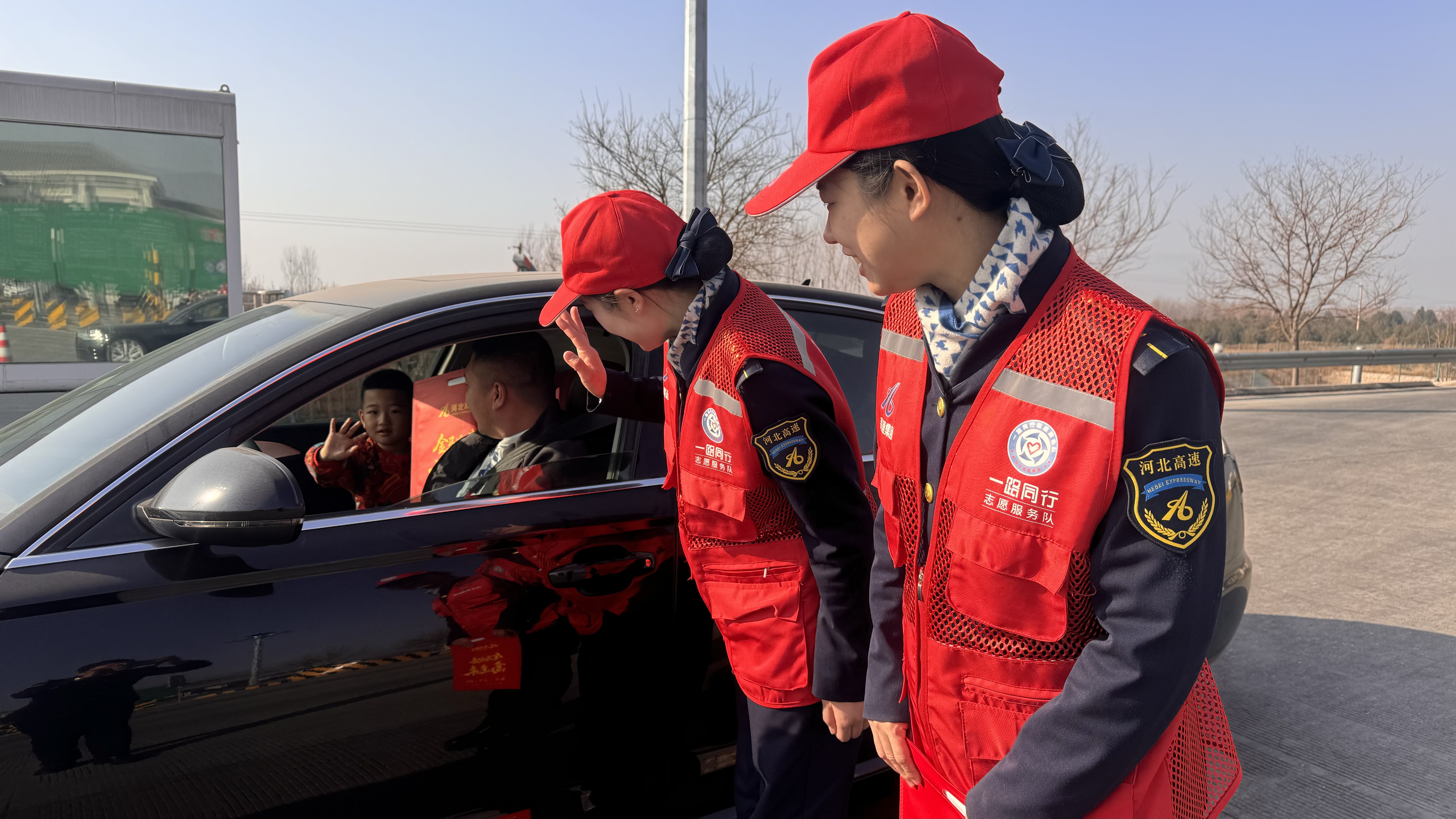 活动现场,收费员们精神饱满,将一份份满载心意的新春礼包递到司乘手中。礼包内既有承载传统年味的吉祥春联,更贴心搭配了车用手机防滑垫等实用物品,递出礼包的同时,收费员不忘送上温馨提醒:“春节车流量大,请保持安全车距”。