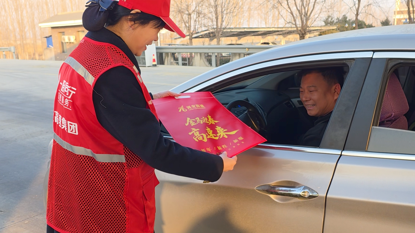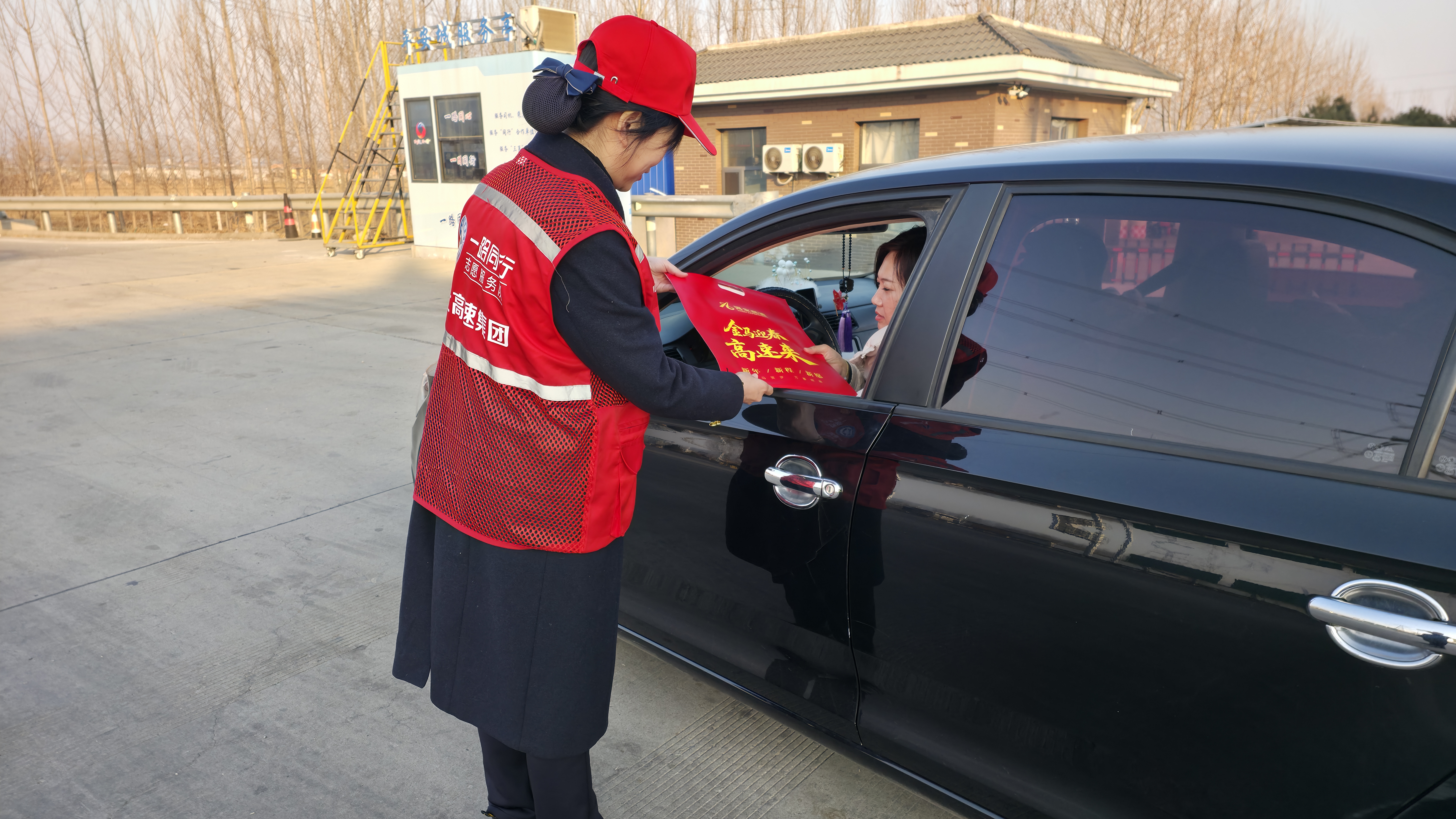 在发放礼包的同时,职工们还结合春运出行特点,向司乘详细普及2026年春节假期小型客车免费通行政策,耐心讲解免费时段、适用车型等判定标准与注意事项;同步宣传安全出行知识,提醒司乘杜绝疲劳驾驶、遵守交通规则,以规范驾驶、文明出行守护团圆之路。