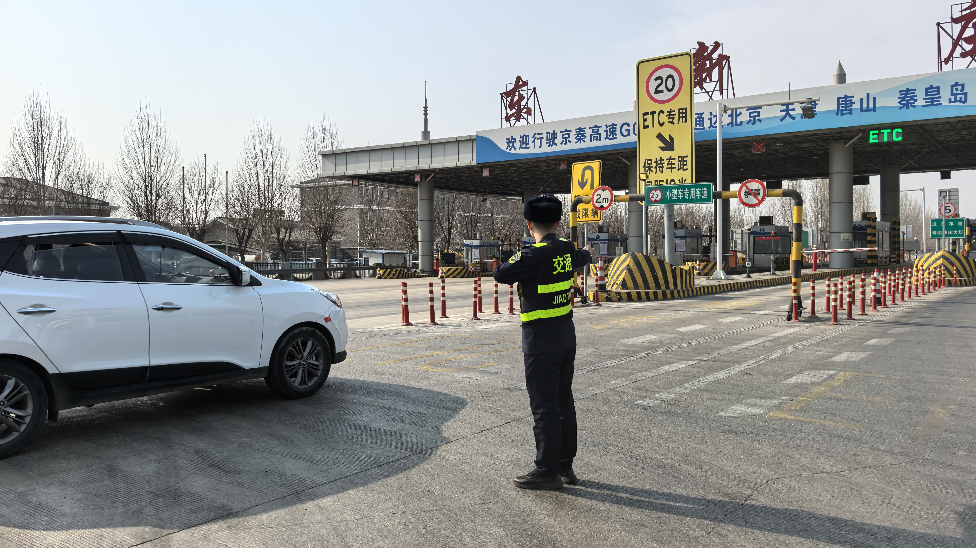 春节假期小型客车免费通行期间,站区车流密集、出行集中。为确保道路通行秩序井然,东新庄收费站疏导人员在收费广场、车道出入口不间断巡查疏导,规范指引免费车辆快速通行,及时分流疏导车流,全力提升站口通行效率。