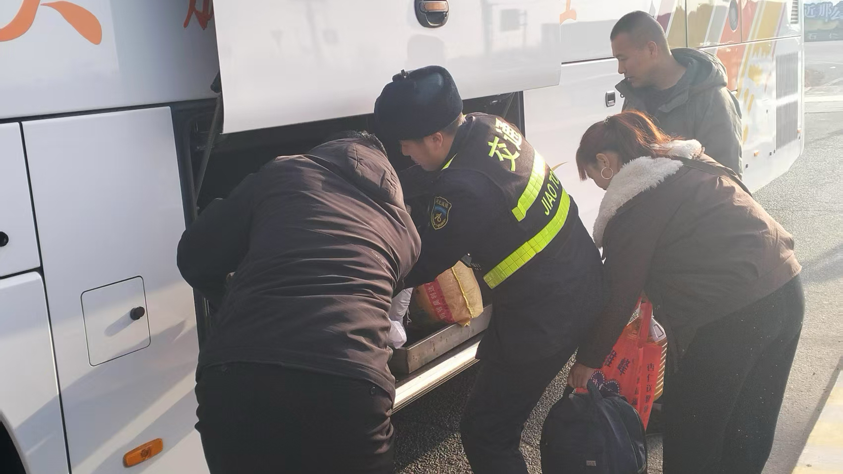 2月21日,正在广场巡查的值岗人员发现,出口外广场有一队乘客携带着大量行李焦急等候,部分老人和孩子面露疲惫。工作人员立即上前询问,得知该批乘客需在此换乘客车,因行李较多且担心错过车次而十分着急。