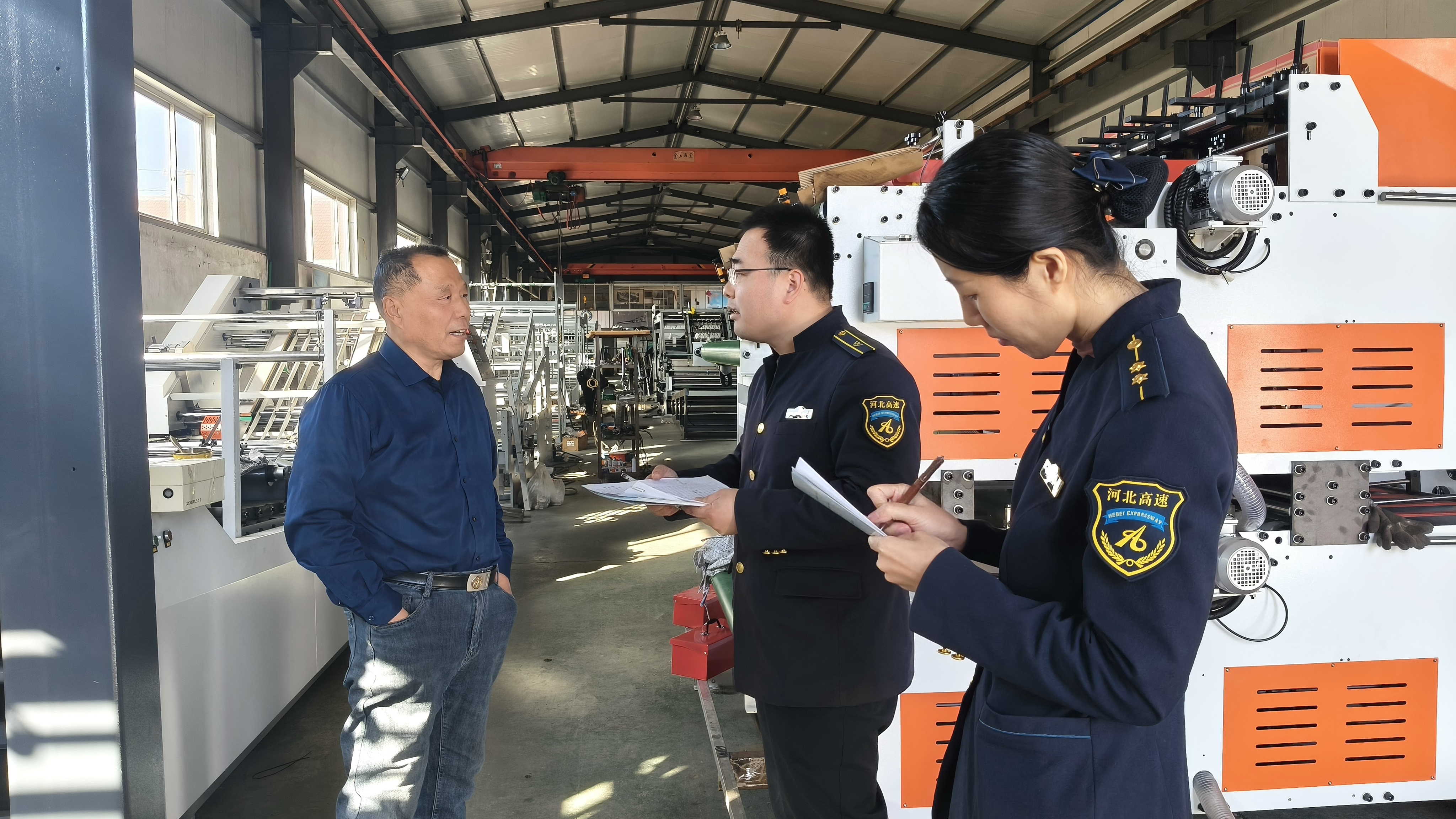为持续深化“同行服务”建设,为沿线企业纾困解难,发挥高速交通枢纽服务效能,近日,京哈北线分公司组织专项服务小组,主动走访周边四家印刷机械企业,开展“问需于企、精准服务”问卷调查及政策宣讲活动,将高速公路的暖心服务送到企业“家门口”。