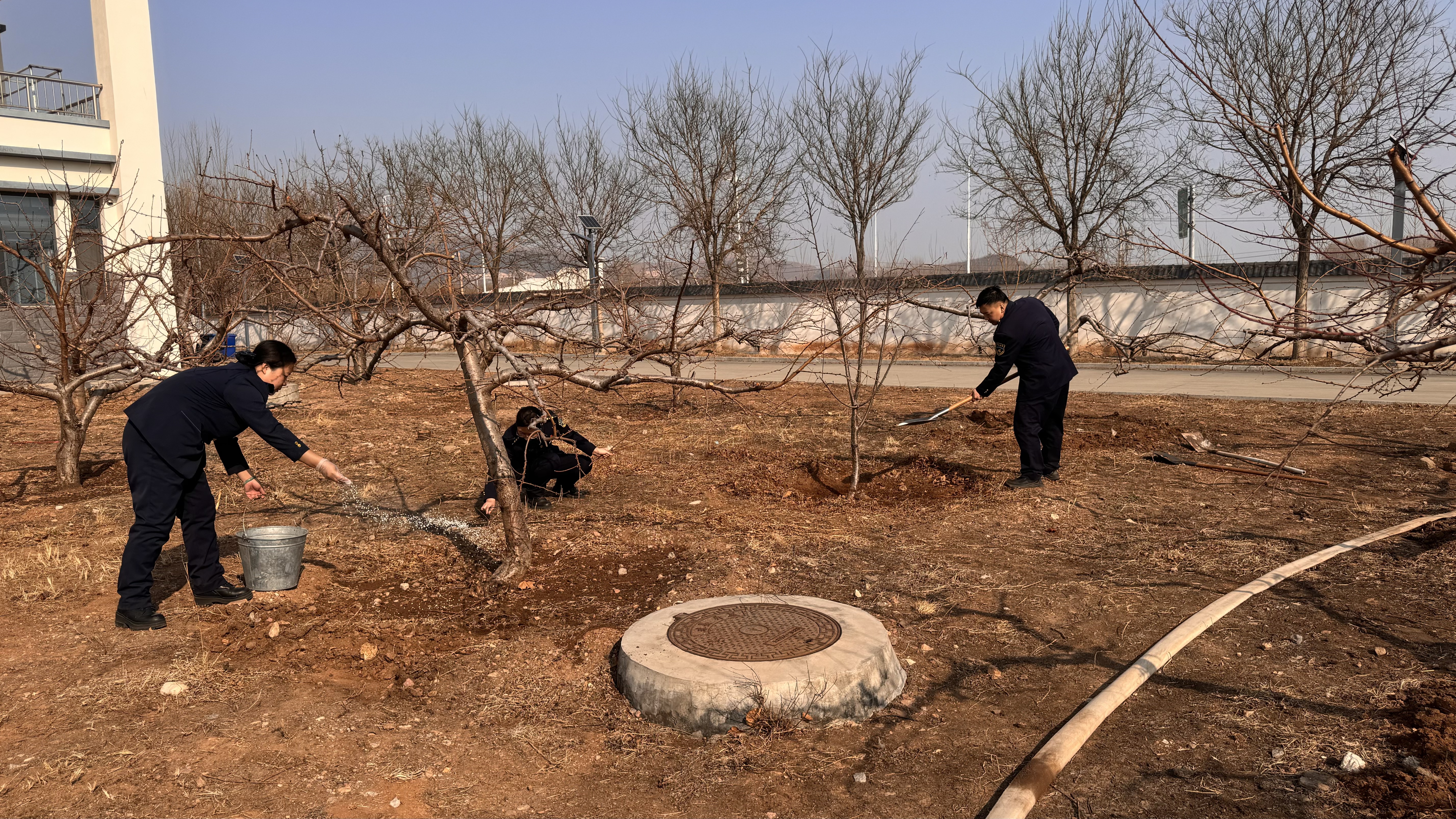 3月11日,职工们化身“护绿使者”,分工协作、默契配合。男职工们手持铁锹、锄头,对站区绿化带内的枯树、杂草进行清理,为补植苗木开辟空间;女职工们则细心修剪绿植,确保造型美观。在补植环节,大家认真完成挖坑、扶苗、填土等工序,为站区打造多层次绿化景观。