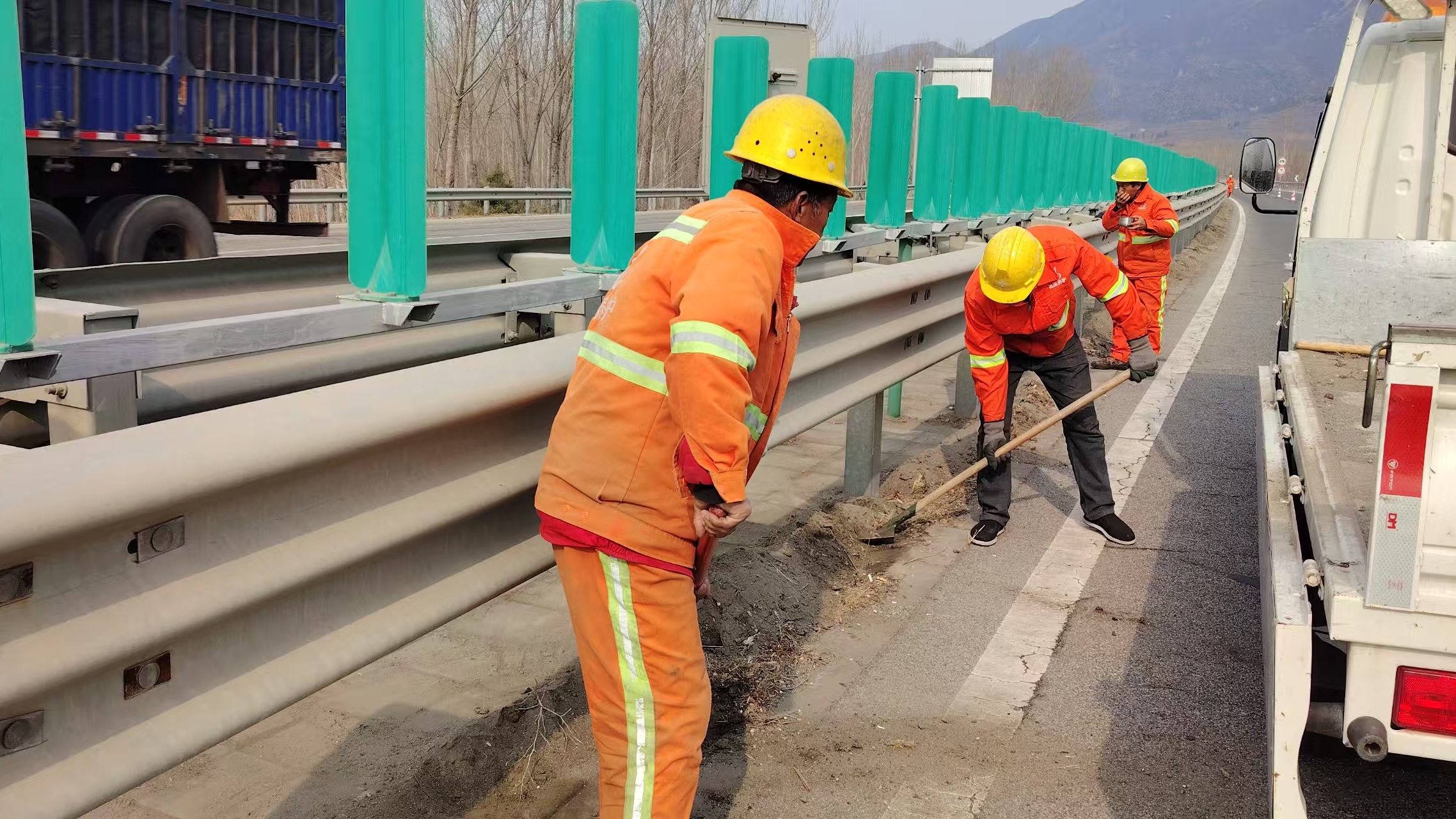 深化沿线治理,提升道路整体颜值。中央分隔带整洁与否直接影响道路整体观感和行车视线。中心组织养护人员对全线路段中央分隔带积土、杂草、垃圾进行专项清理整治,逐路段、逐点位排查,对淤积泥土、枯枝落叶、白色垃圾进行全面清掏清运,确保中分带整洁规范、通透美观。同时,坚持整治与管护并重,健全日常巡查维护机制,做到及时发现、及时清理、及时恢复,推动路域环境从“集中整治”向“常态保持”转变。